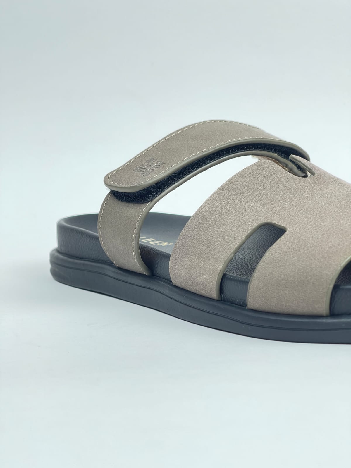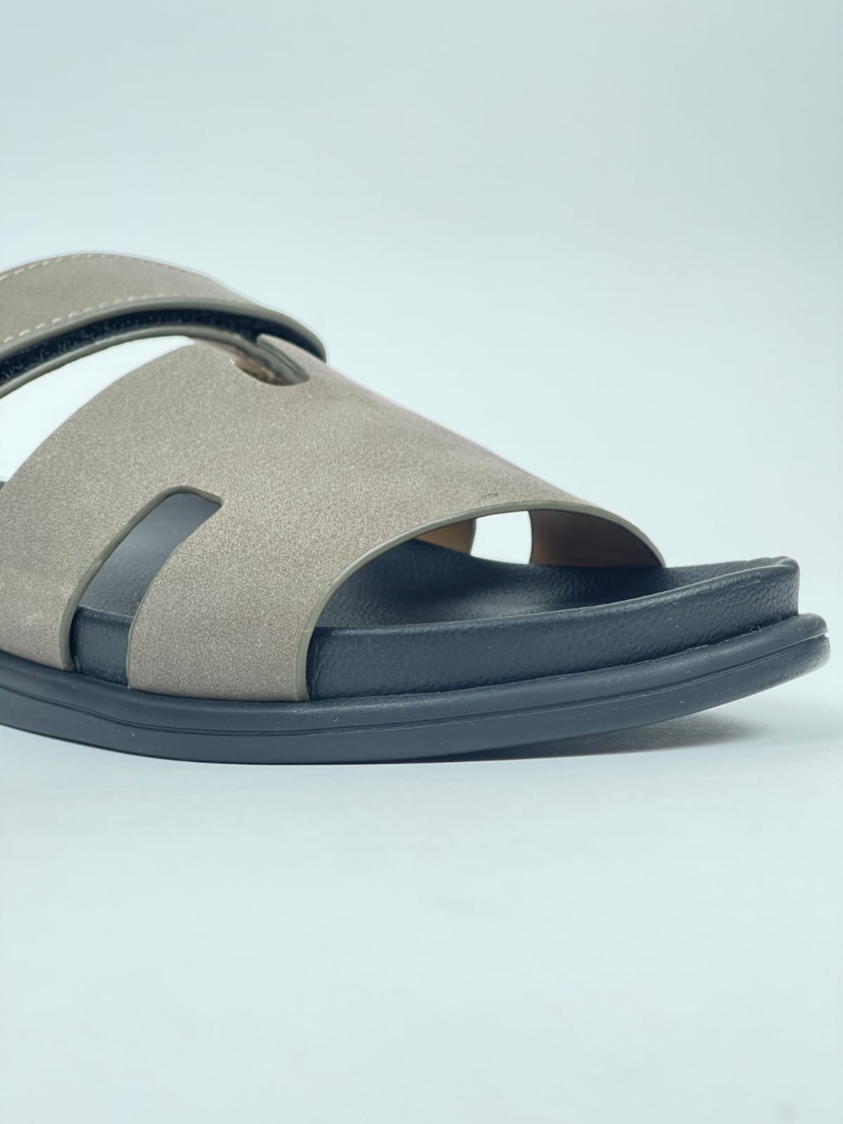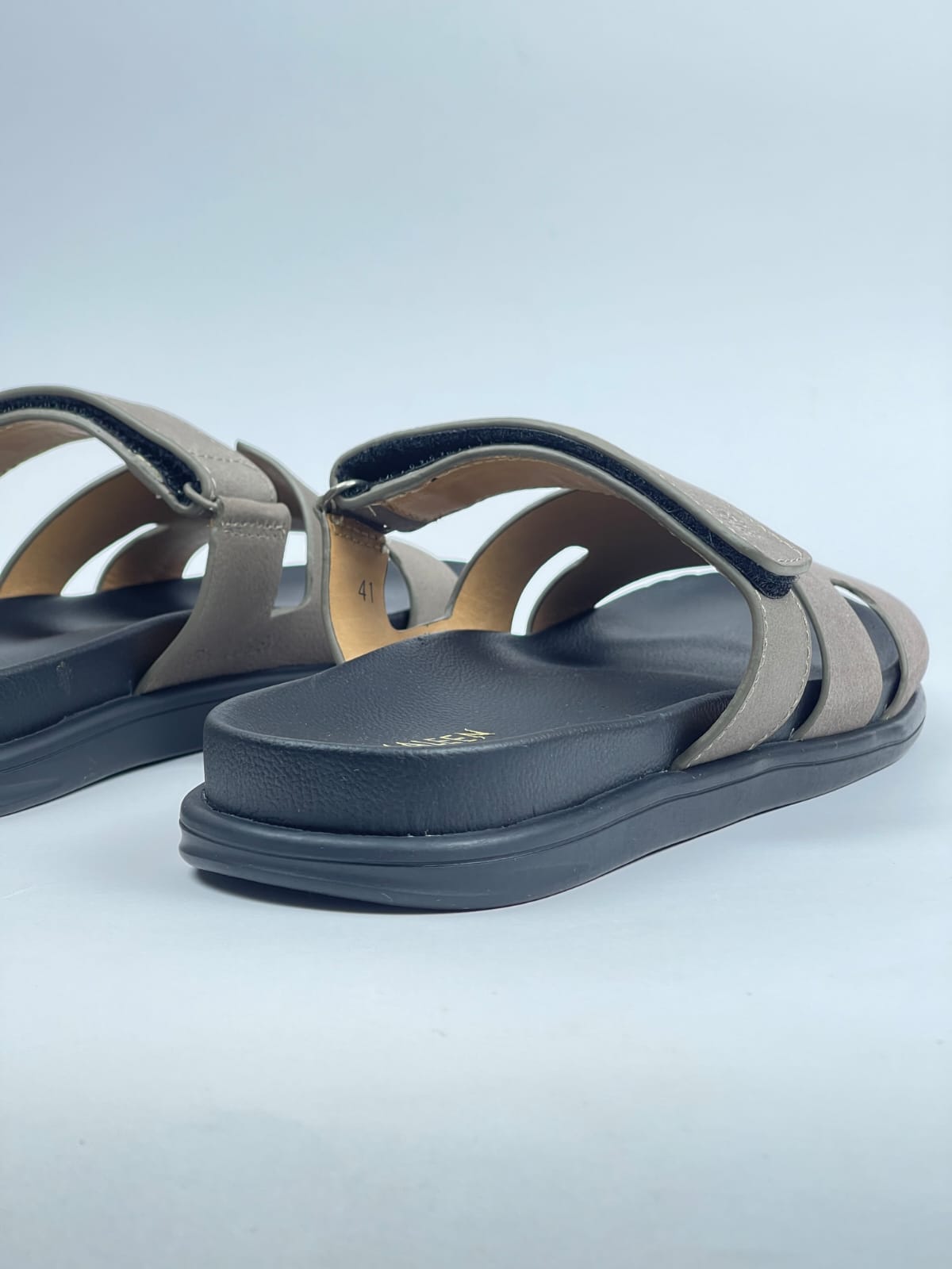 মিনিমাল ও ক্লিন-কাট ডিজাইন, যা আধুনিক ফ্যাশনের সাথে মানানসই হলেও শালীনতা বজায় রাখে। নুবাক লেদারের টেক্সচার ও পরিপাটি ফিনিশিং স্যান্ডেলটিকে দেয় একটি শান্ত ও প্রিমিয়াম লুক।